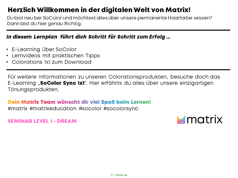 TIPP: Lade dir das E-Book "Das Matrix Colorations 1x1 zum Download" herunter, dann hast du alle Infos immer griffbereit verfügbar.